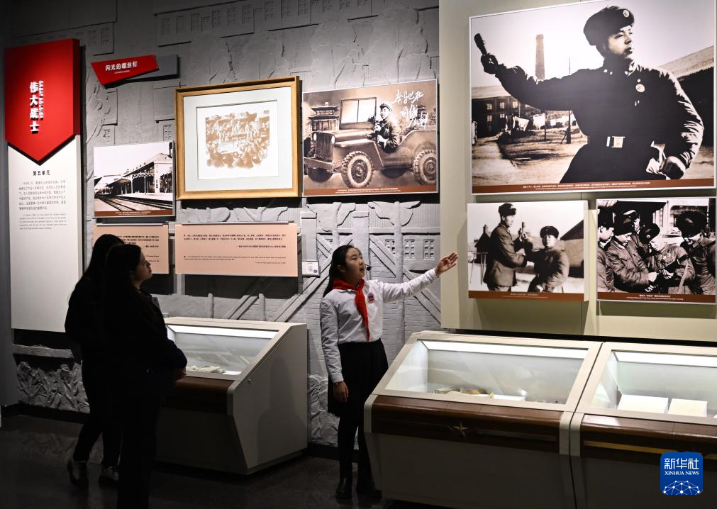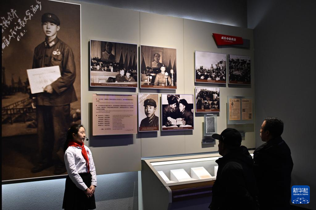 2月29日,志愿小讲解员(左)为参观市民讲解雷锋事迹。新华社记者 杨青 摄