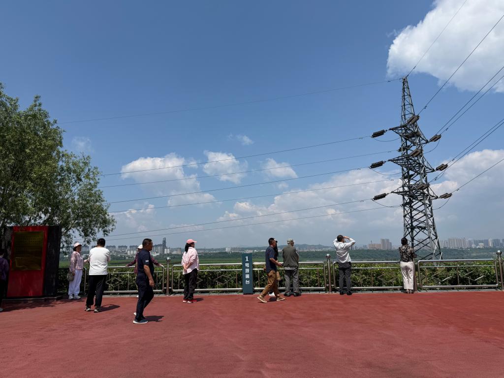 游客在抚顺煤矿博物馆观景台参观抚顺西露天矿。 新华社记者洪可润 摄