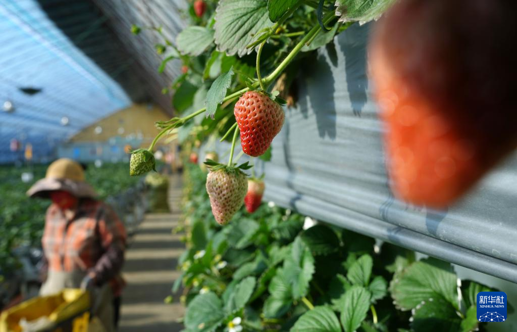 新华社沈阳1月18日电(记者张嘉琪、汪楠、白涌泉)腊月里,东北的室外滴水成冰。走进辽宁东港的草莓大棚,一颗颗鲜嫩的草莓正“美美地”晒着太阳。“颜色鲜红、个儿大饱满的就能摘了。”清晨,圣野浆果专业合作社的采摘工们正从嫩绿色的叶丛中小心翼翼地摘下成熟的草莓。