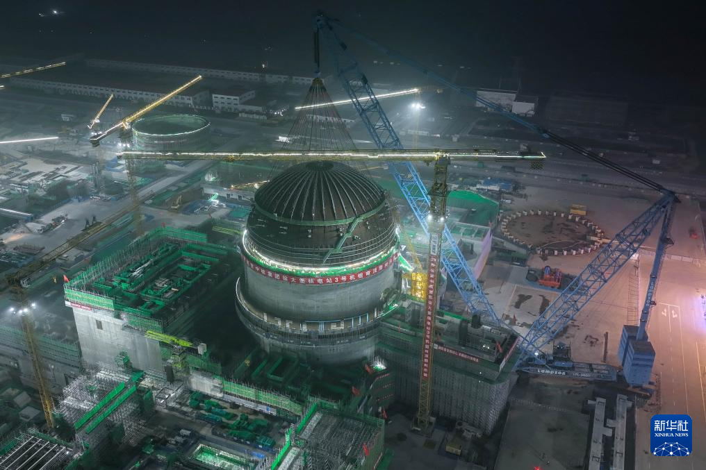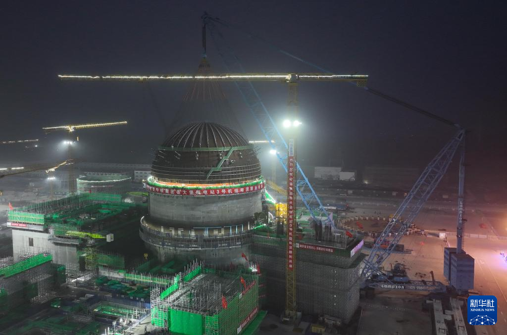 当日,徐大堡核电项目3号机组顺利实现穹顶吊装就位。徐大堡核电项目3、4号机组建成后,预计每年可提供160亿千瓦时以上清洁电力,相当于年节约燃煤570万吨,年减少二氧化碳排放量1680万吨,对于保障我国能源安全、优化能源结构具有积极作用。pagebreak