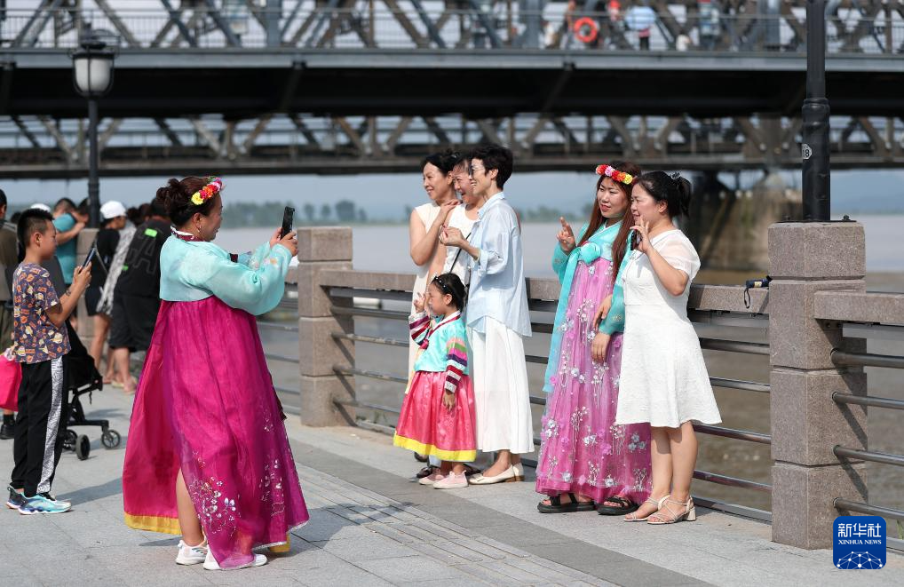 8月2日,游客在鸭绿江断桥景区游览。新华社记者 龙雷 摄