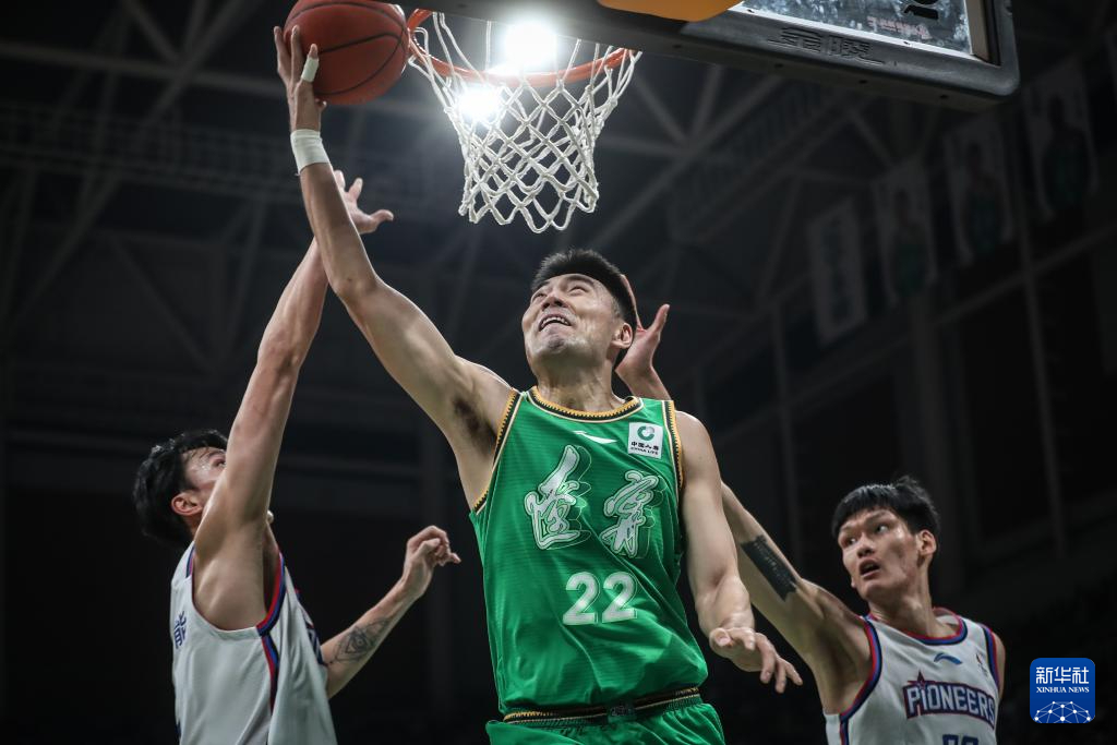 11月15日,辽宁队球员李晓旭(中)在比赛中上篮。新华社记者 潘昱龙 摄
