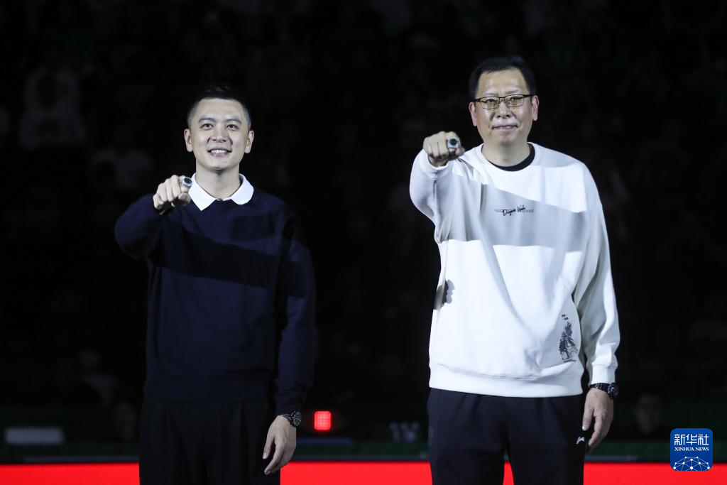 新华社沈阳11月15日电(刘艺淳、赵洪南)观众席恢复寂静,闪光灯点亮星海。率队完成三年三冠的辽宁男篮原主教练杨鸣、原助理教练吴乃群重回征战多年的赛场,戴上期盼已久的总冠军戒指,享受荣耀时刻。