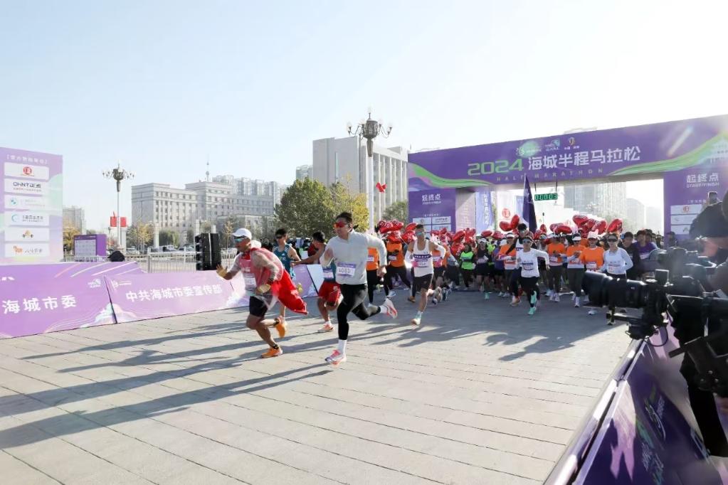 20日,2024海城半程马拉松鸣笛开跑。(受访者供图)