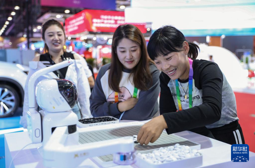 9月25日,工作人员在“数字赋能 智造未来”主题展览上与机器人对弈。新华社记者 龙雷 摄pagebreak