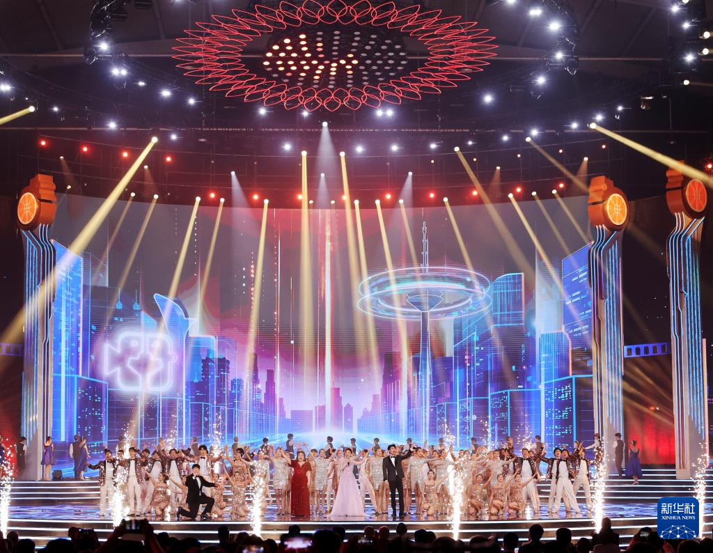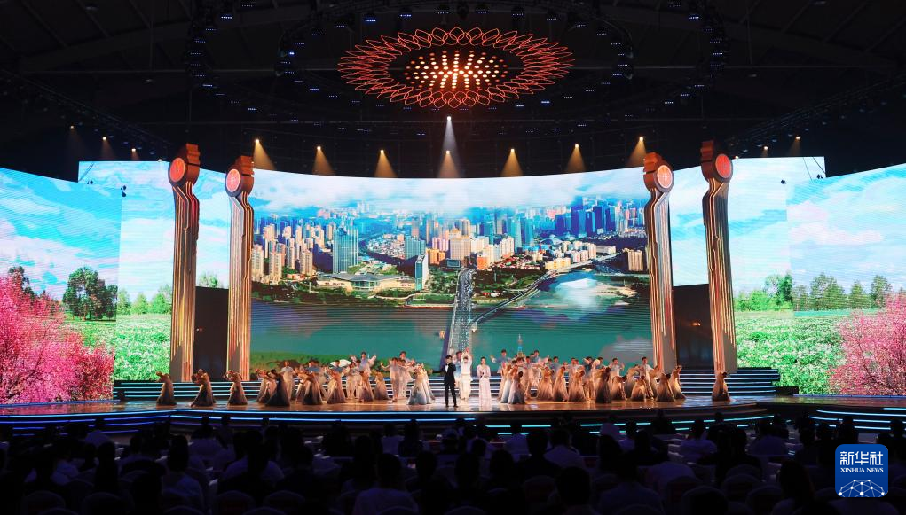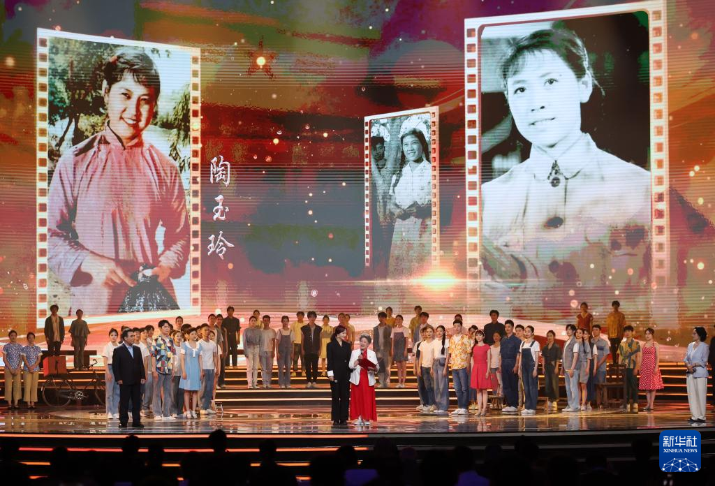 6月11日,艺术家陶玉玲(中右)等在闭幕式现场表演情景歌舞《年轻的朋友来相会》。