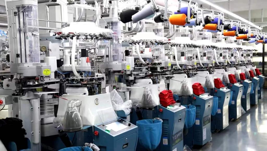 厂房升级了,设备也得跟上。在这里,相金彪将工厂原有的手动织袜机全部淘汰,添置了98台全自动织袜机。“像去年7月县里举办‘袜子节’,企业一个季度的销量就翻了一番,没有好机器,产量哪里跟得上。”