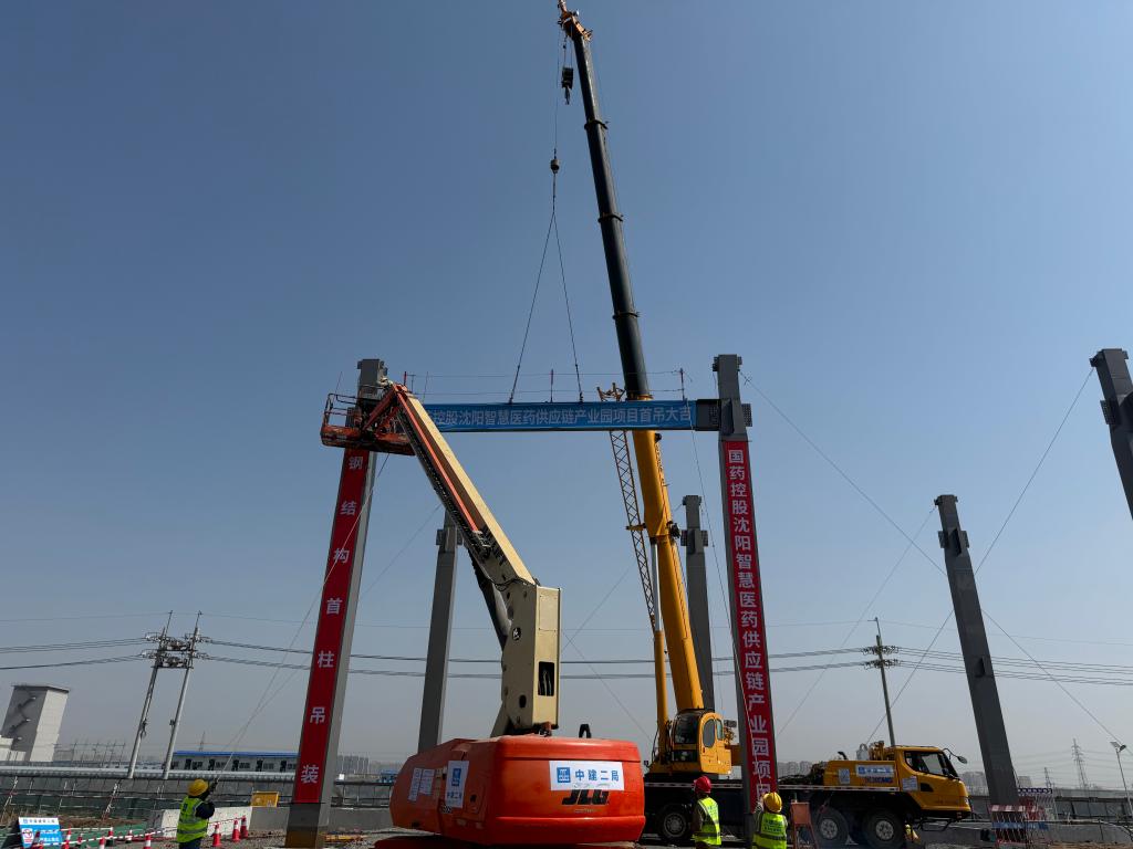 新华网沈阳4月29日电(记者姜兆臣)4月29日,随着首批钢构件精准吊装就位,标志着国药控股沈阳智慧医药供应链产业园项目一期工程正式进入钢结构主体施工阶段。