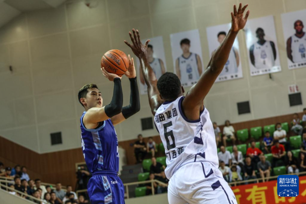 9月3日,辽宁益胜队球员史文龙(右)在比赛中投篮。新华社记者 潘昱龙 摄pagebreak