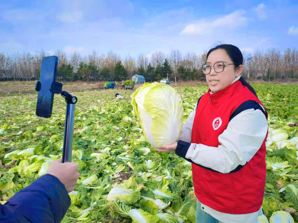 新华网大连11月29日电 近日,在大连市旅顺口区南牙户咀村(以下简称南牙村),旅顺口区铁山供销社电商团队通过在抖音等平台的直播,在大连地区开展了“小时达”服务,帮助当地农民快速销售符合绿色食品标准的大白菜。