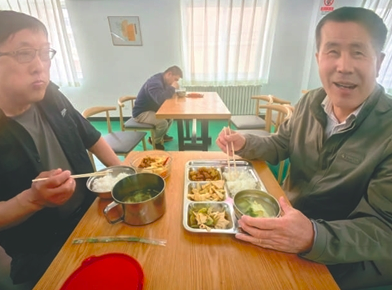 王大舜、董艳菊是一对夫妻组合,董艳菊是厨房里的“大厨”,王大舜则是一颗“螺丝钉”,跑腿、扛煤气罐、和面样样都行,哪组临时缺人他马上顶上。