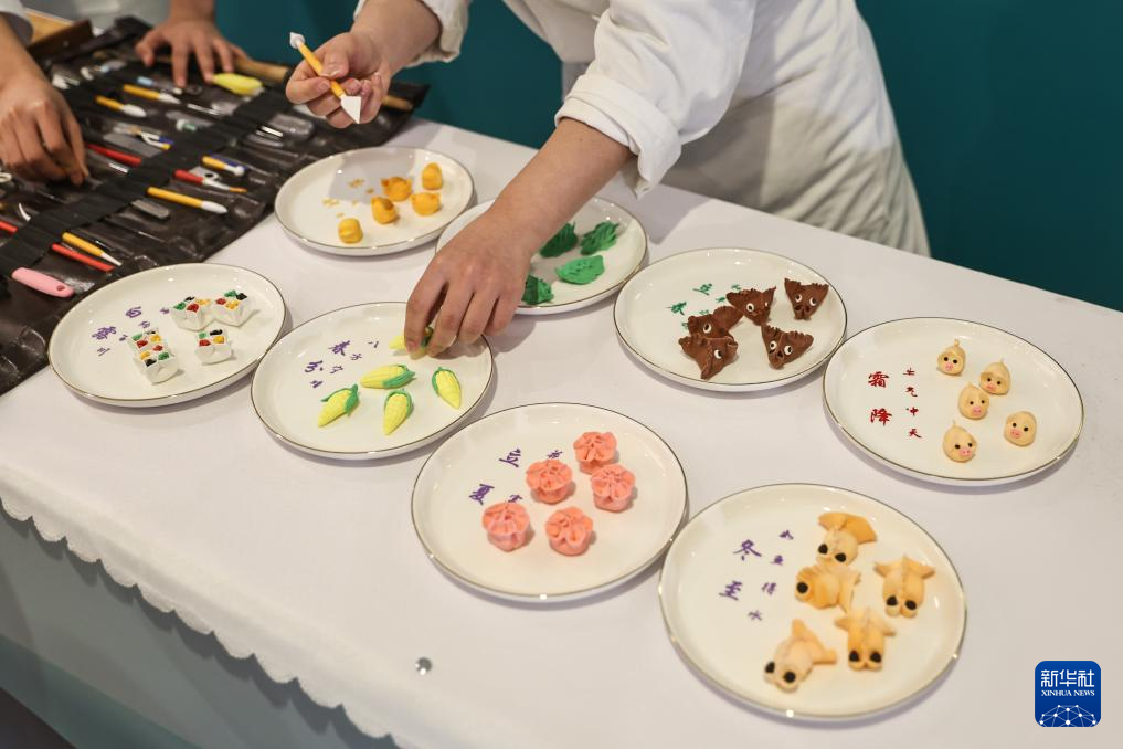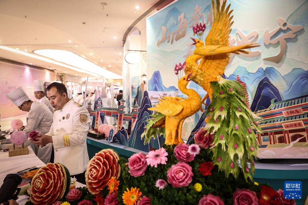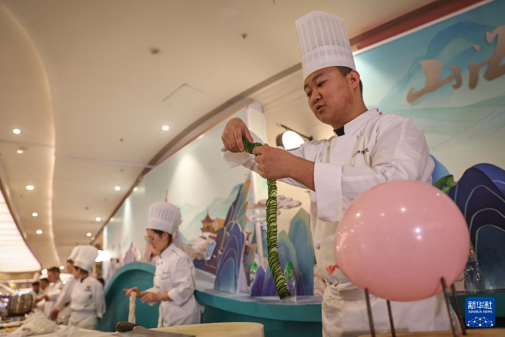 活动现场厨师为大家展示雕花技艺。新华社记者 潘昱龙 摄
