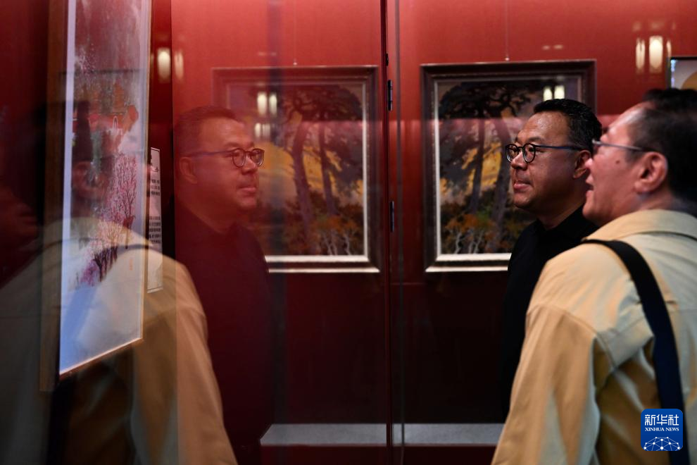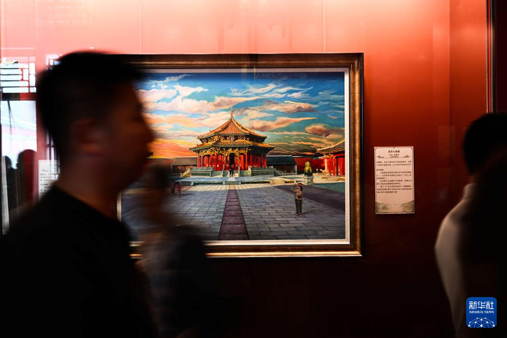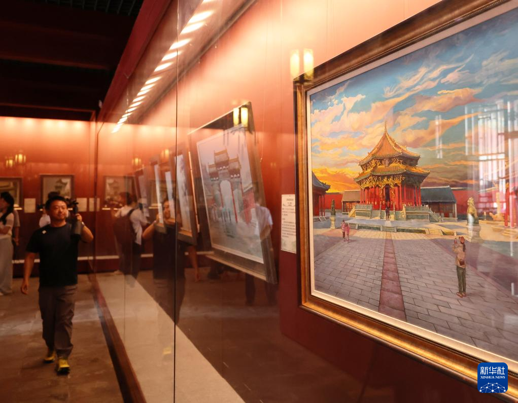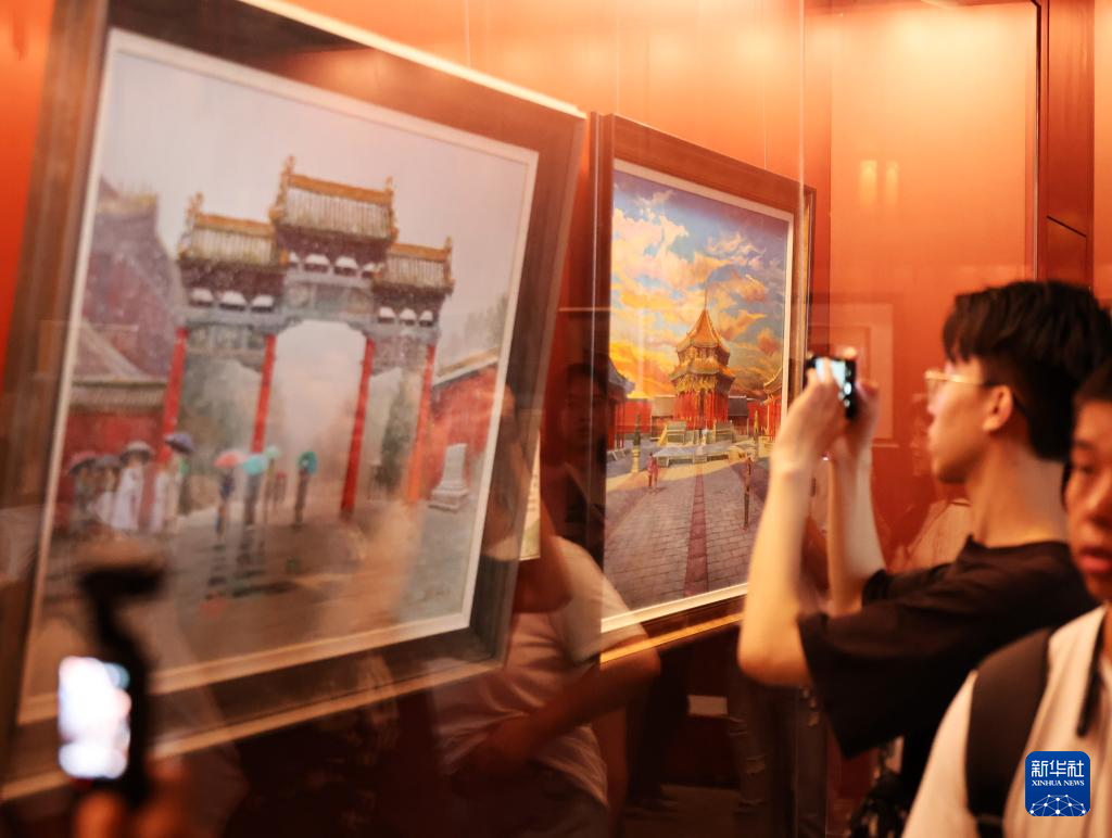 7月2日,参观者在沈阳故宫观看绘画作品展。