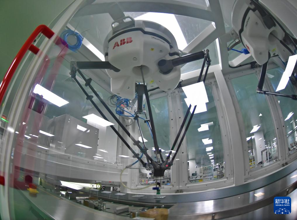 5月22日,在沈阳兴齐眼药股份有限公司车间,机械手抓取产品。新华社记者 杨青 摄