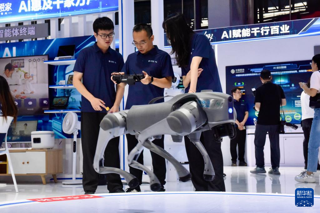 9月7日在2025全球工业互联网大会上拍摄的中国移动灵犀机器人。