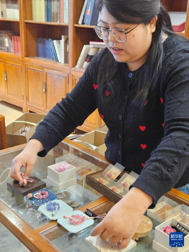 辽宁省博物馆“簪花”系列手作饰品。新华社记者 于也童 摄