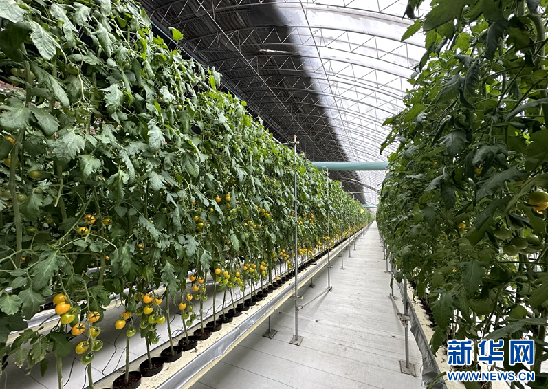 日光温室内,无土栽培的小番茄。新华网赵健彤摄