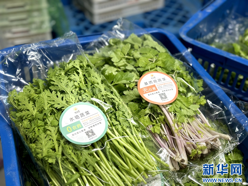 包装好准备发往生鲜超市的精品蔬菜。新华网赵健彤摄