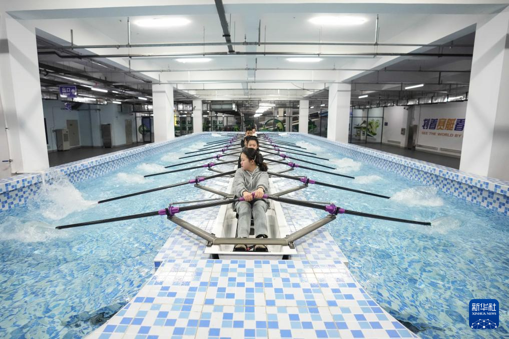 1月24日,参加浑南九小寒假托管班的小朋友在进行赛艇训练。新华社记者 潘昱龙 摄
