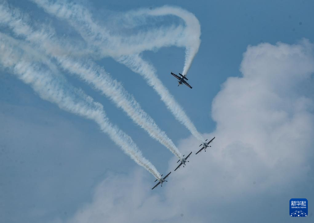 “头一次这么近距离地看飞机编队表演,非常震撼!”开幕式上,6名跳伞队员在2000多米的高空跳伞,3架特技飞机编队后大坡度转弯,5架自转旋翼机低空漫步……这场蓝天上的视觉盛宴让在场观众纷纷感叹。