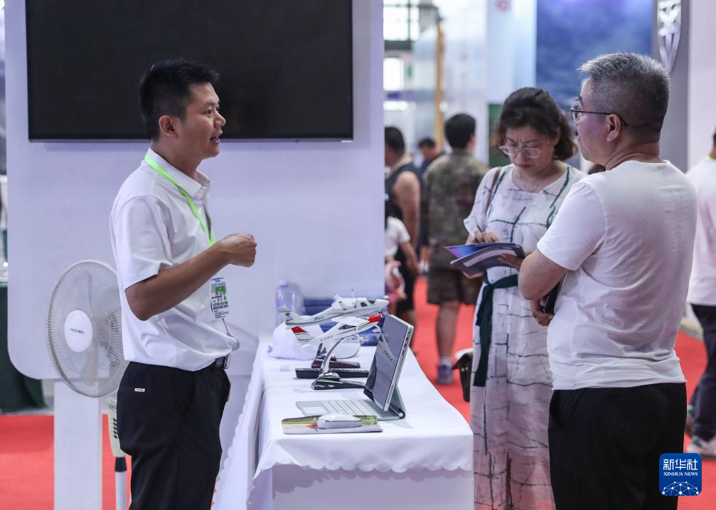 8月18日,观众在室内静态展区参观飞行器展品。新华社记者 龙雷 摄
