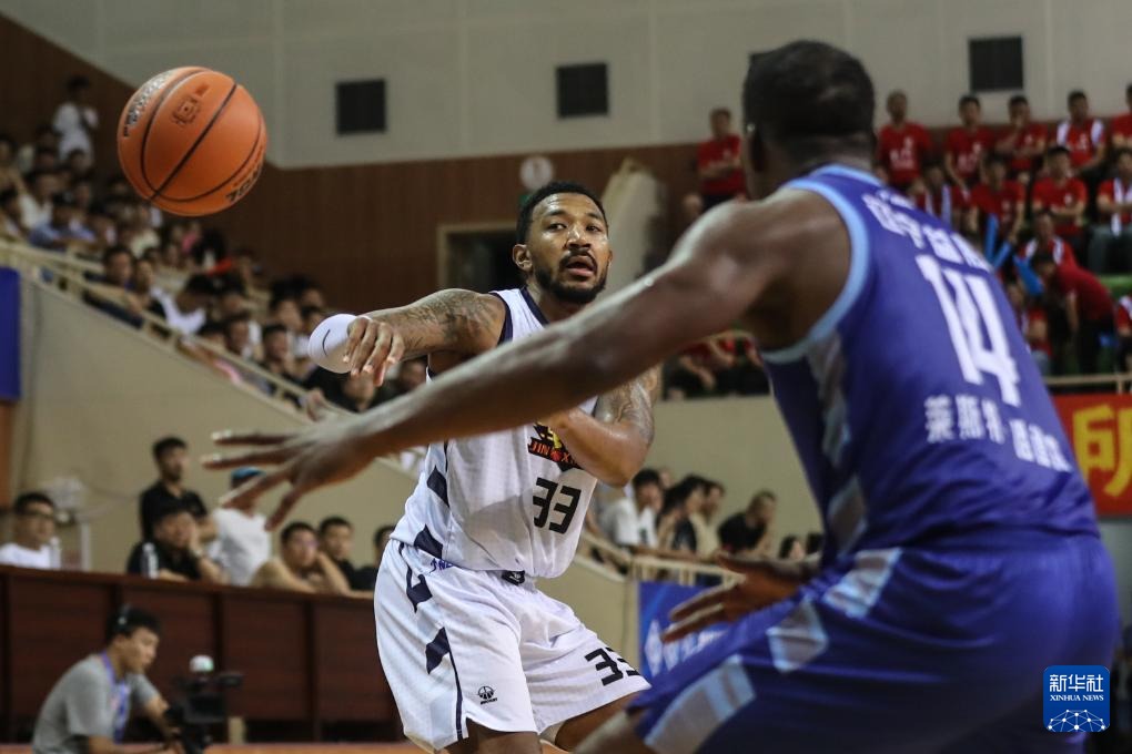 7月26日,河南赊店老酒队球员约翰逊(左)在比赛中传球。新华社记者 潘昱龙 摄pagebreak