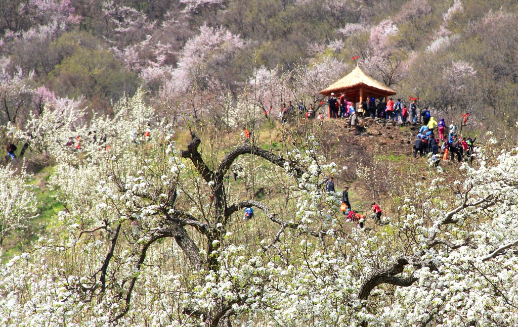 石文镇今年的梨花开得格外茂盛,远远看去群山白头,飞花胜雪,十数里银装素裹,令人叹为观止。梨花谷的梨树与其他地方不同,这里的梨树成片不成行,大大小小的梨树随山就势,天然生长,每年四月中旬至五月中旬,百花齐放,绵延十余里的梨花同时开放,香染春风,雪挂枝头,一片洁白之中点缀着樱桃花、杏花、李子花、苹果花和五颜六色的草花,与蓝天、白云、村落、人家……组成一幅极具视觉冲击力的原生态唯美画卷。“梨花谷处处都是美景,我在手机里已经留下上百张自拍照。”沈阳游客张佳雨说。