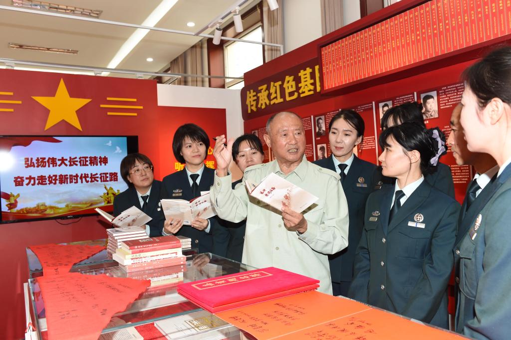 新华网沈阳10月23日电(谭长俊 尤立峰)“一匹马,一匹将沉的马,将没顶于泥沼的马,在挣扎,在徒劳地挣扎,加速死亡地挣扎啊……”诗作《沉马》的故事讲到动情处,台下听众爆发出热烈掌声。近日,著名军旅作家、诗人胡世宗在辽宁省军区沈阳第四干休所为官兵、文职人员,以及驻地周边单位代表讲述长达两个小时的长征故事,感人肺腑,引发心灵震撼,激发后人走好新时代长征路。