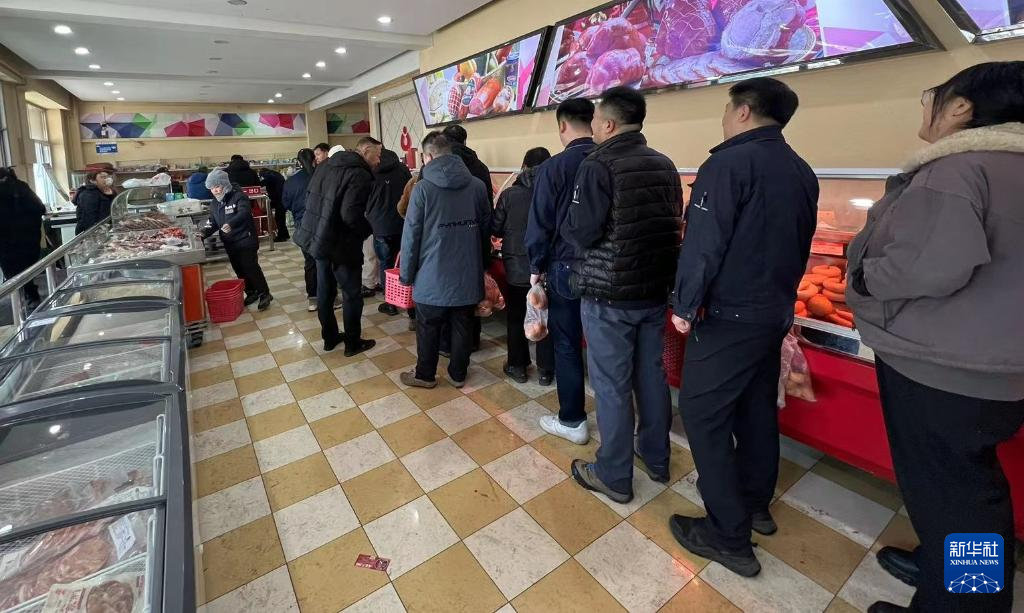 消费者在沈阳市铁西区排队购买鸡架等食品。 新华社记者 洪可润 摄