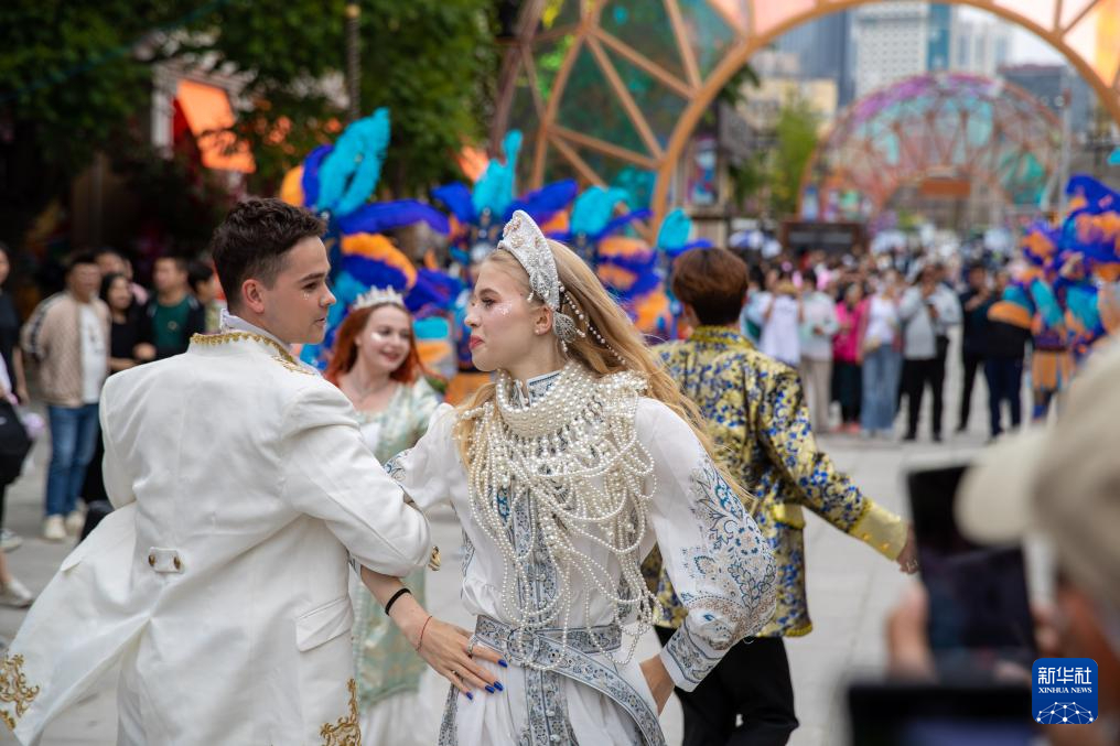 5月25日,游客在大连俄罗斯风情街欣赏表演。新华社记者 李旭伦 摄pagebreak