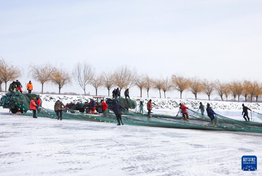 2月1日,工作人员在沈阳市康平县卧龙湖进行冬捕作业。新华社发pagebreak