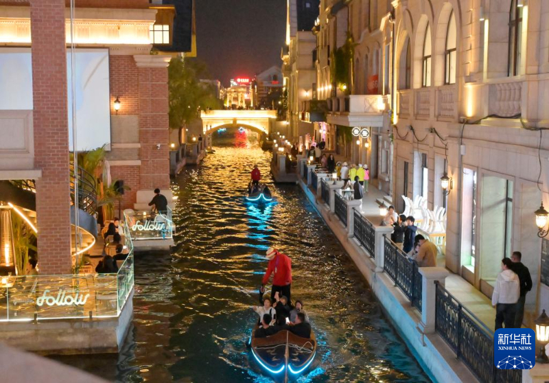 初夏时节,海滨城市大连的夜晚微风习习,游客徜徉其间,感受五光十色的浪漫。