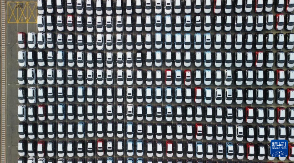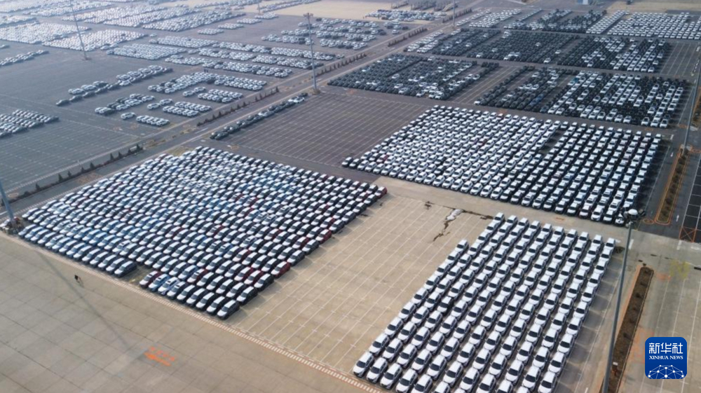 1月16日拍摄的停放在大连港大连汽车码头有限公司港口停车场的新车(无人机照片)。新华社记者 陈为 摄