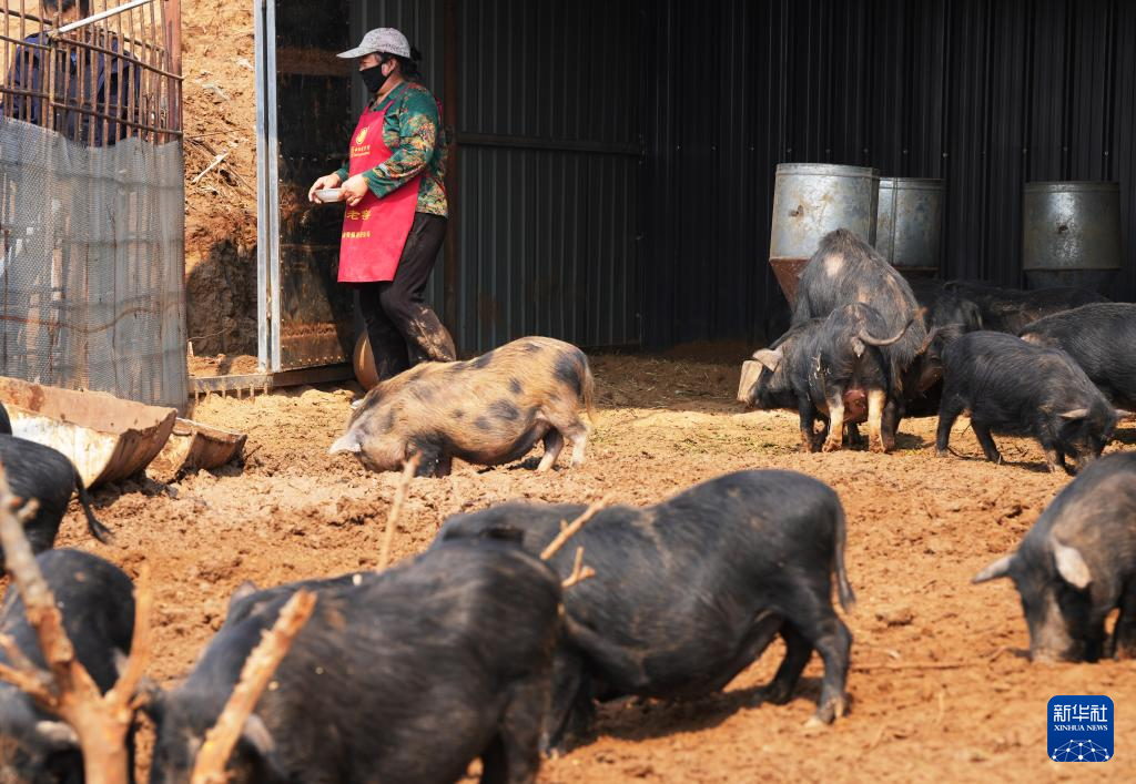这是辽宁省阜新蒙古族自治县于寺镇官营子村村民养殖的藏香猪(4月15日摄)。