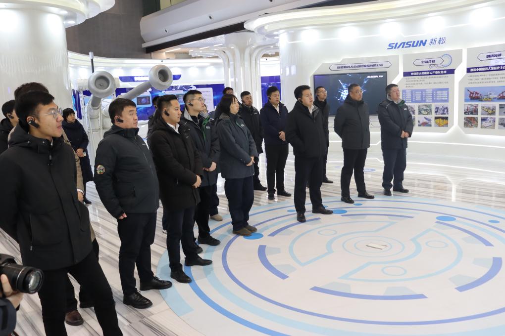 共建双方首先来到新松公司实地研学。在新松公司产品展厅,党员干部们认真听取先进科技产品和企业情况介绍,在移动机器人装配调试车间现场观看新松公司自主创新产品演示。通过实地参观,党员干部们深入了解了机器人行业的现状和发展前景,深刻认识到创新才是企业发展的核心驱动力,在激烈的市场竞争中,唯有创新才能生存,唯有创新才能获得竞争优势。