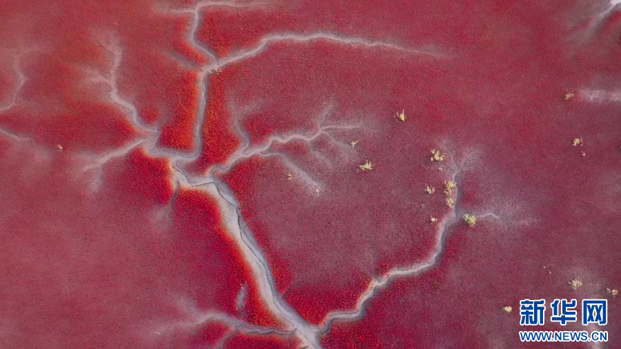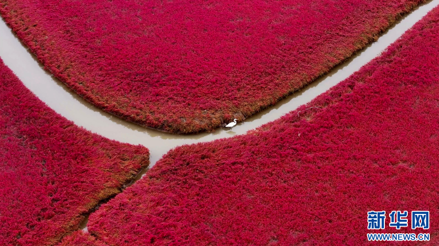 图为辽宁盘锦红海滩国家风景廊道景区。新华网发(朱思友摄)