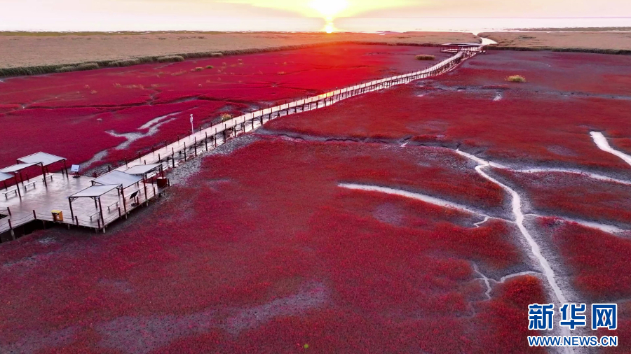 新华网沈阳11月7日电(刘舒)苇海浩瀚,滩涂绵延。辽宁盘锦红海滩国家风景廊道景区是国家5a级旅游景区,全长约18公里,被誉为“世界红色海岸线”,也是“中国最北海岸线”。
