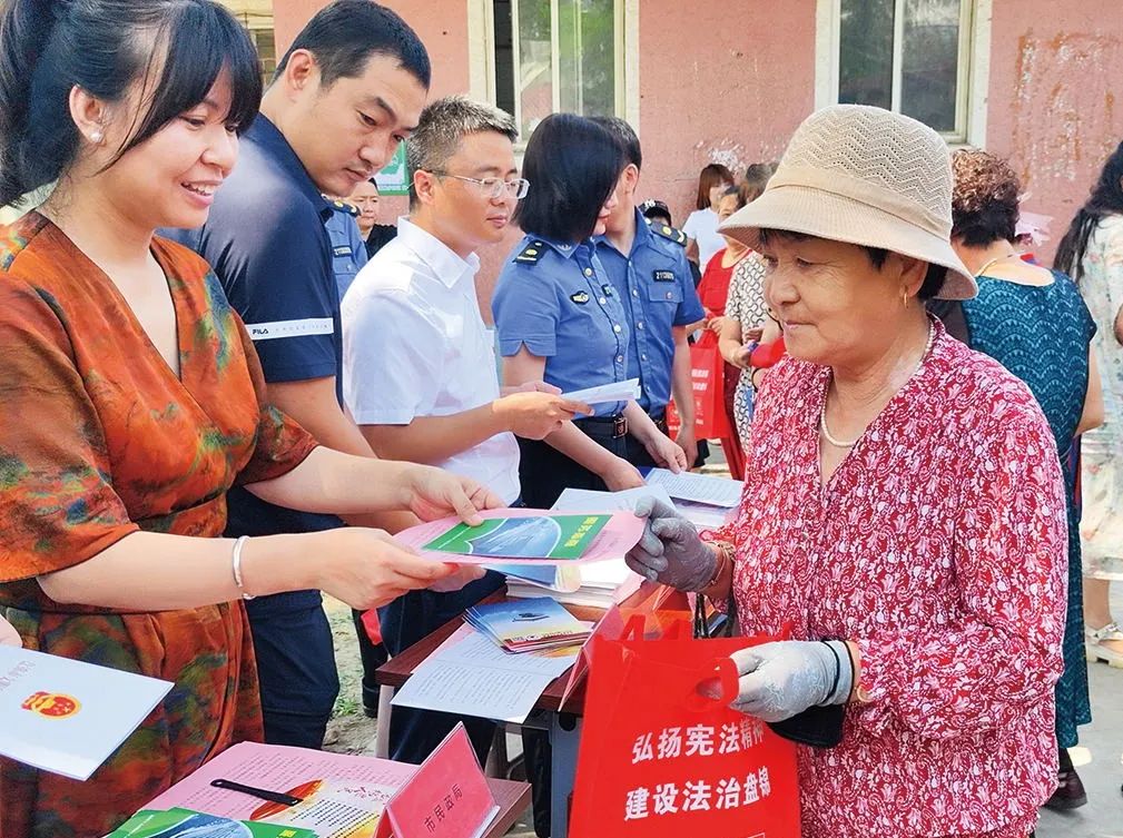 工作人员向居民发放普法宣传手册(受访者供图)