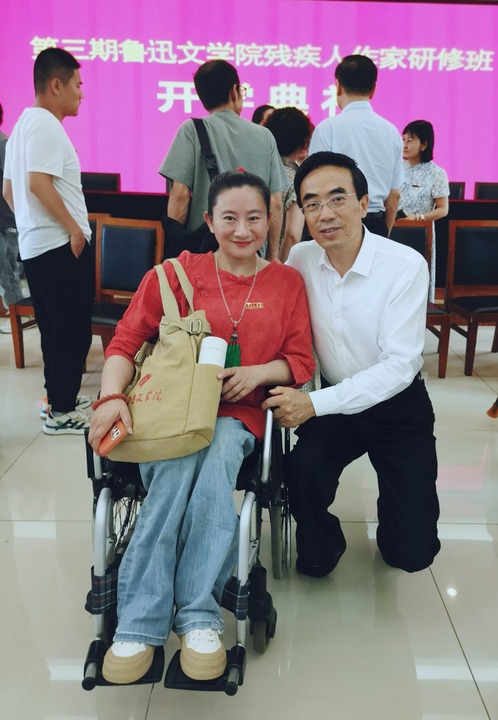 单丹与中国残联主席程凯在鲁迅文学院合影。受访者供图