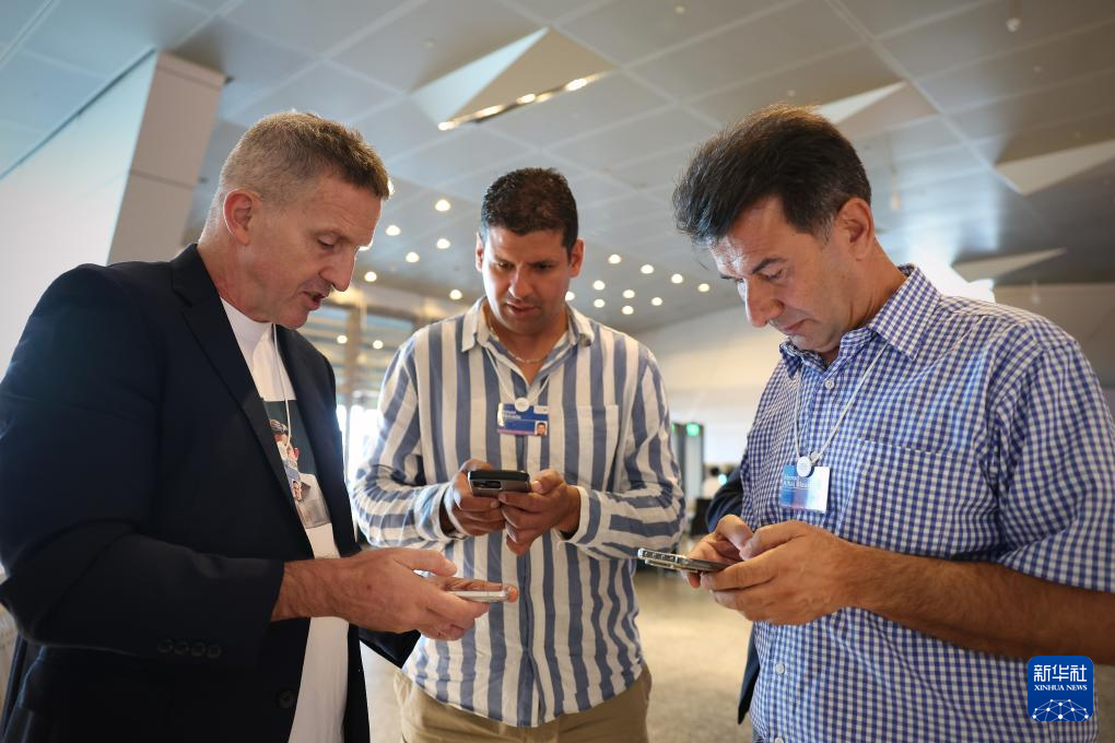 6月26日,三位嘉宾在夏季达沃斯论坛主会场大连国际会议中心内分享凯发网址的联系方式。新华社记者 姚剑锋 摄