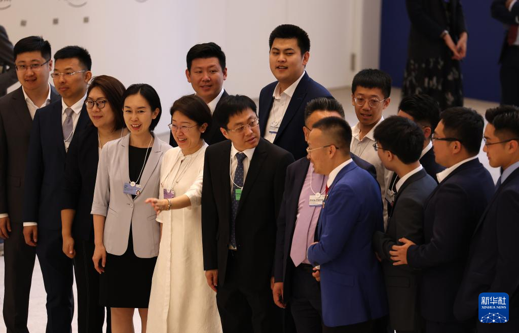 6月26日,嘉宾在夏季达沃斯论坛主会场大连国际会议中心内合影。新华社记者 姚剑锋 摄pagebreak