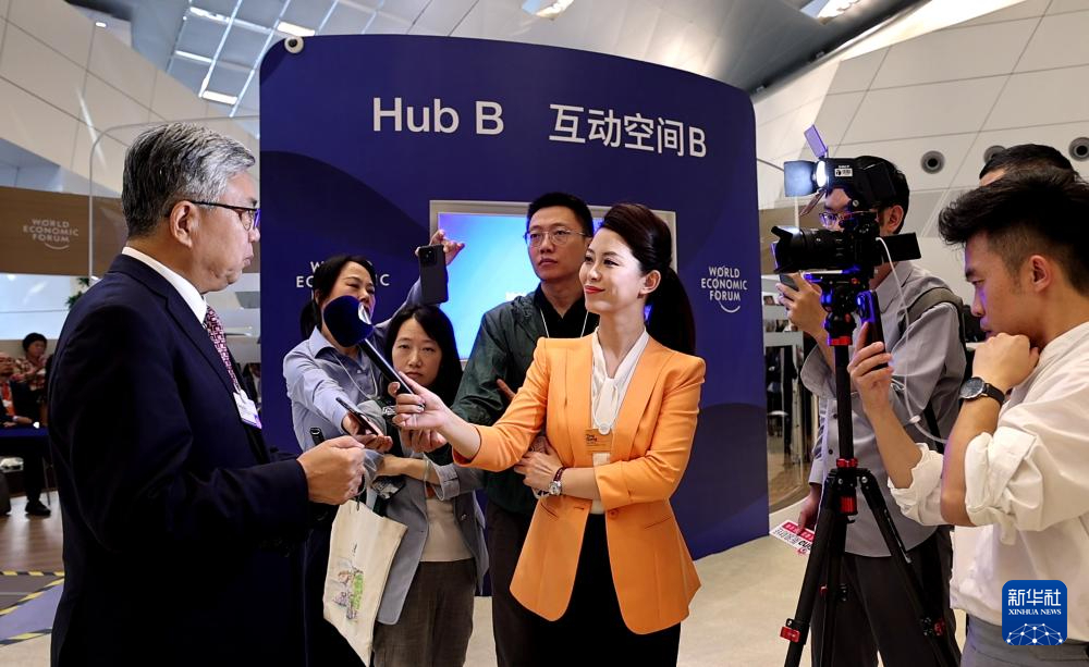 6月26日,一位嘉宾在夏季达沃斯论坛主会场大连国际会议中心接受媒体采访。新华社记者 姚剑锋 摄pagebreak