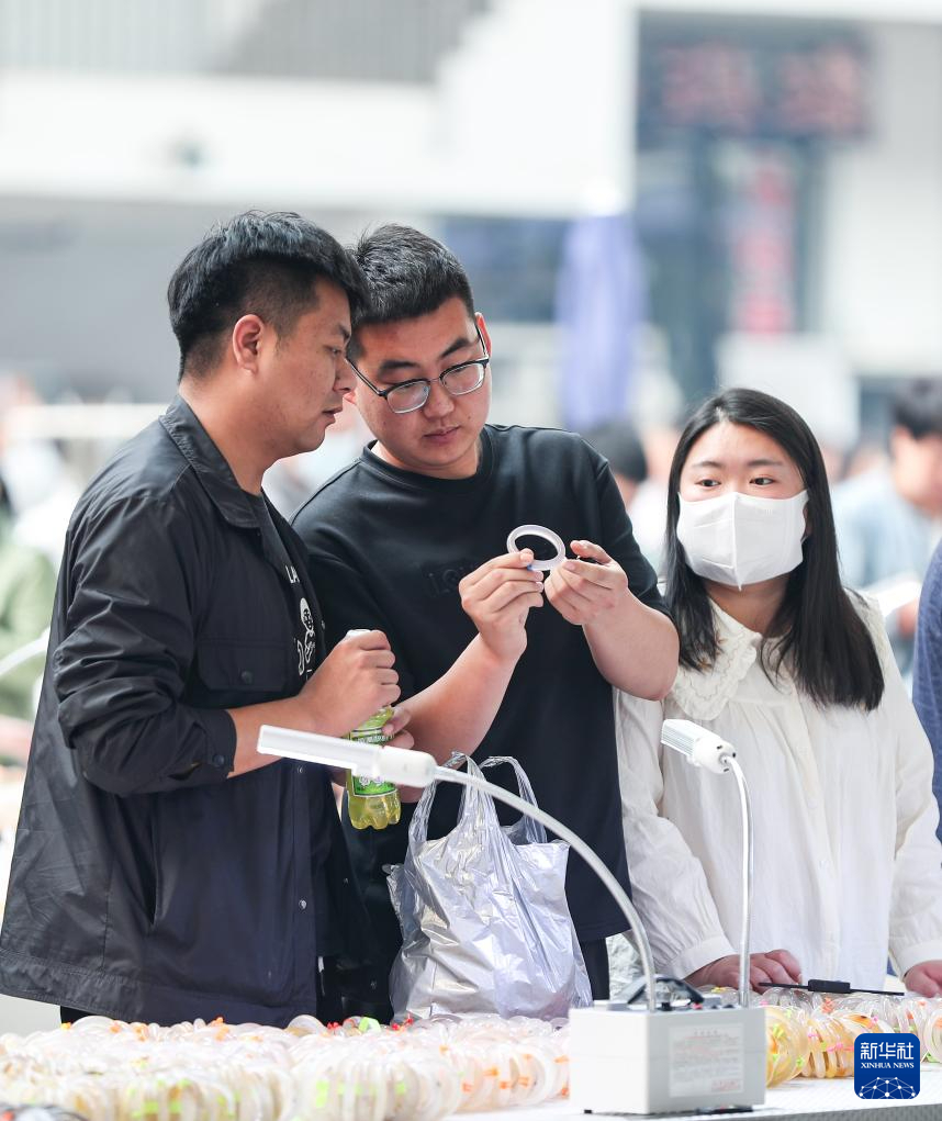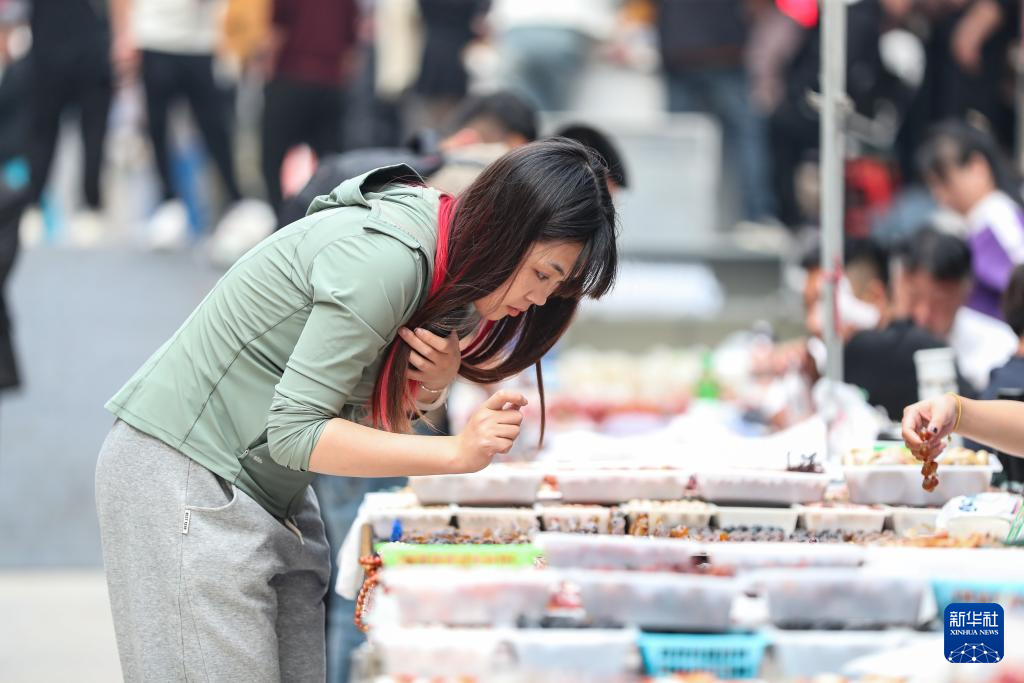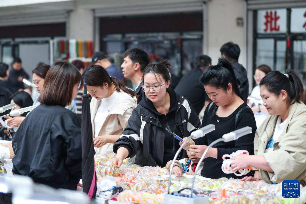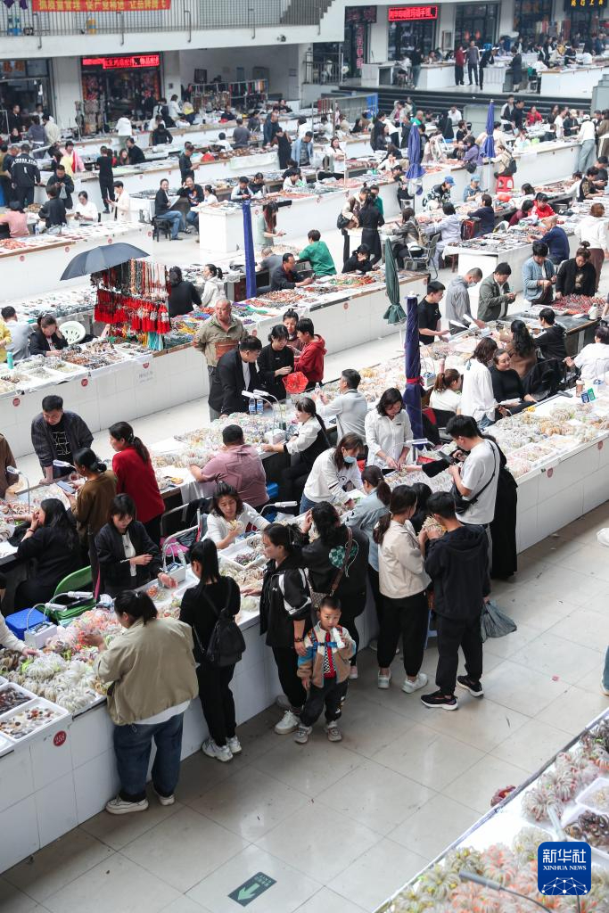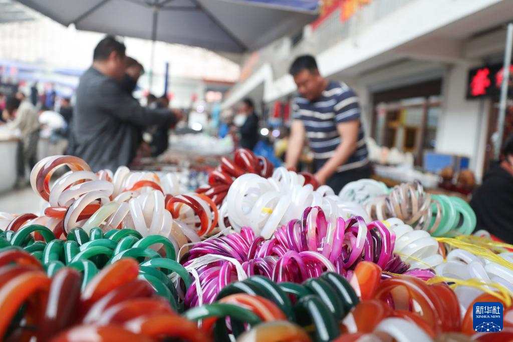 4月26日,在阜新蒙古族自治县十家子镇的福光玛瑙城,顾客选购玛瑙制品。新华社记者 龙雷摄