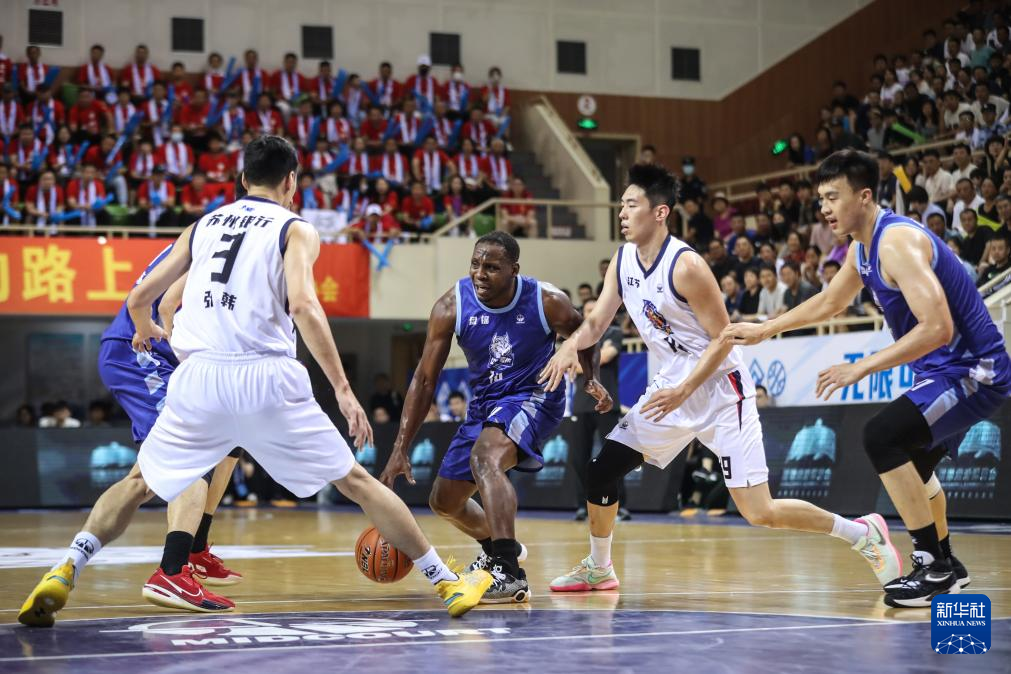 7月16日,辽宁益胜雪狼队球员哈德森(中)在比赛带球突破。新华社记者 潘昱龙 摄pagebreak