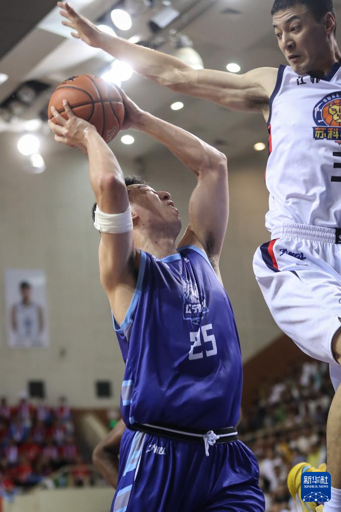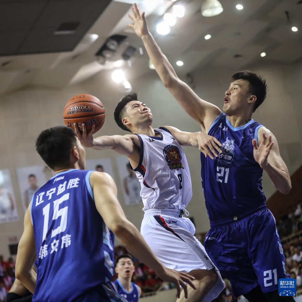 7月16日,辽宁益胜雪狼队球员刘子豪(左)在比赛中上篮。新华社记者 潘昱龙 摄pagebreakpagebreak