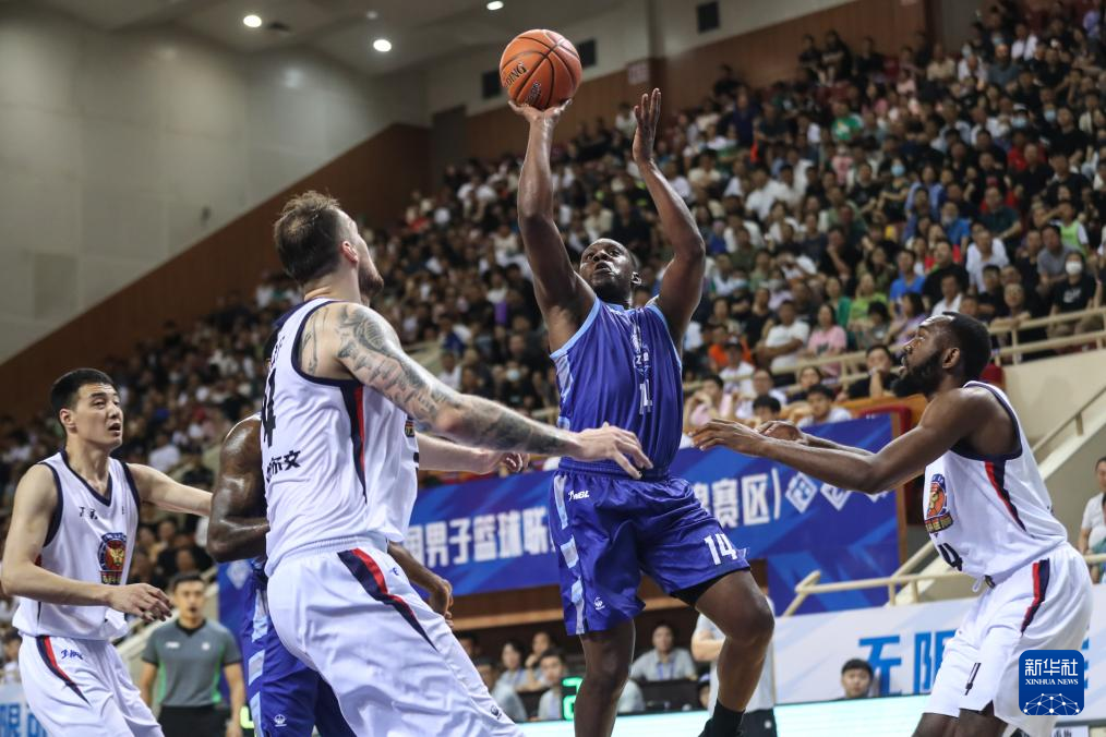 7月16日,辽宁益胜雪狼队球员哈德森(右二)在比赛中上篮。新华社记者 潘昱龙 摄pagebreakpagebreak