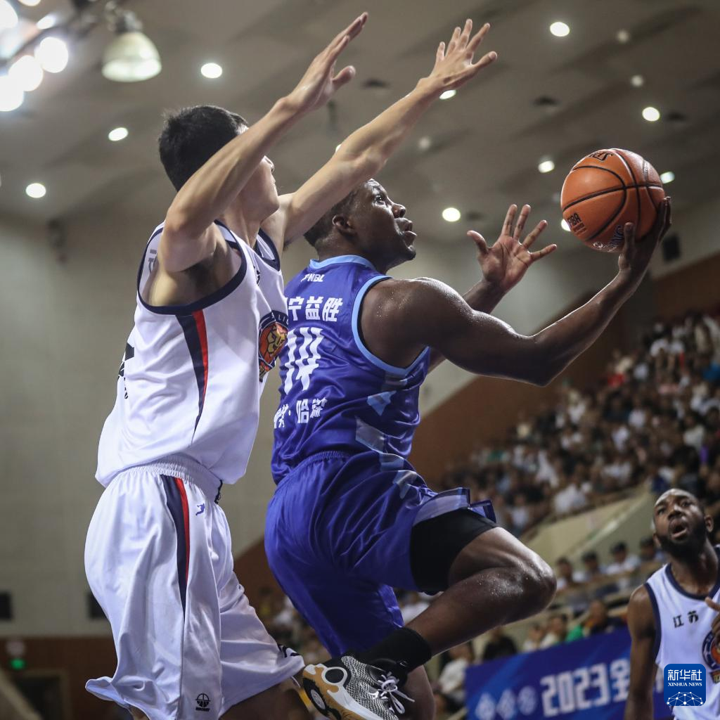 7月16日,江苏盐南苏科队球员刘剑阁在比赛中上篮。新华社记者 潘昱龙 摄pagebreakpagebreak