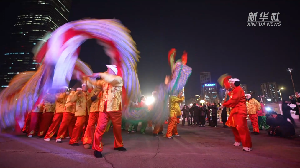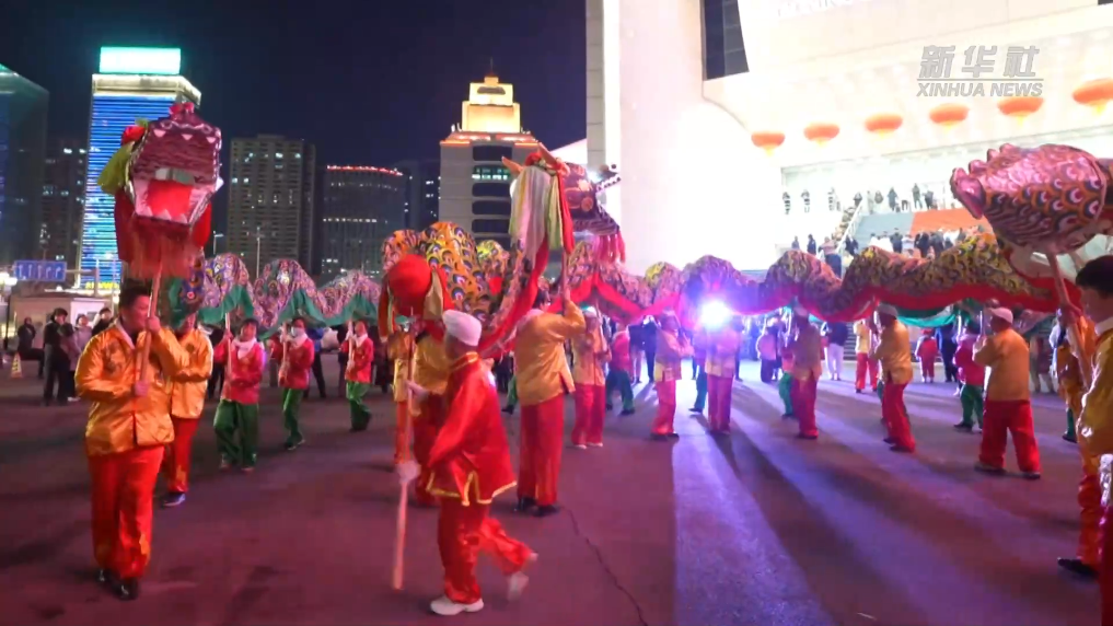 在沈阳人民广场,伴随着鼓声咚咚、唢呐声声,两条“巨龙”时而腾跃冲飞、蜿蜒遨游,在当地闻名遐迩的张氏皇苑龙尽情闹元宵。