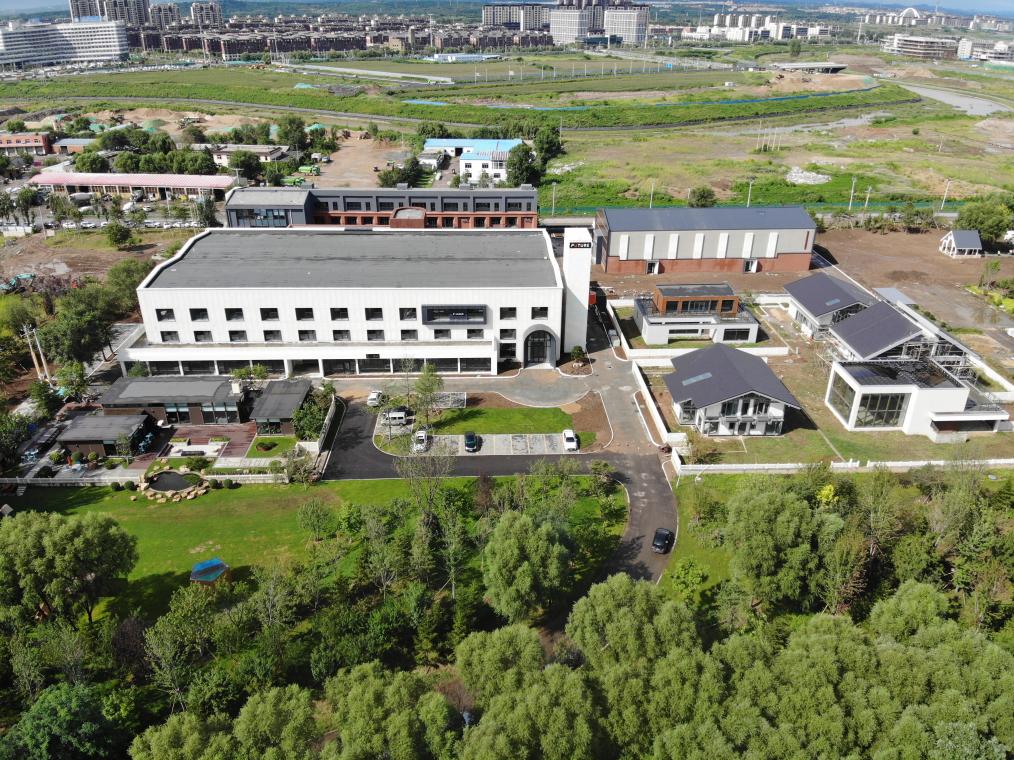 百利得绿色建筑文化体验中心(暨辽宁福泽城市更新有限公司)位于沈抚示范区东李线与沈抚大道交叉口西侧。行走在园区里,高大的行道树、高低错落的环保建筑、池塘散落其间,仿佛置身一座充满文艺气息的“网红小镇”。