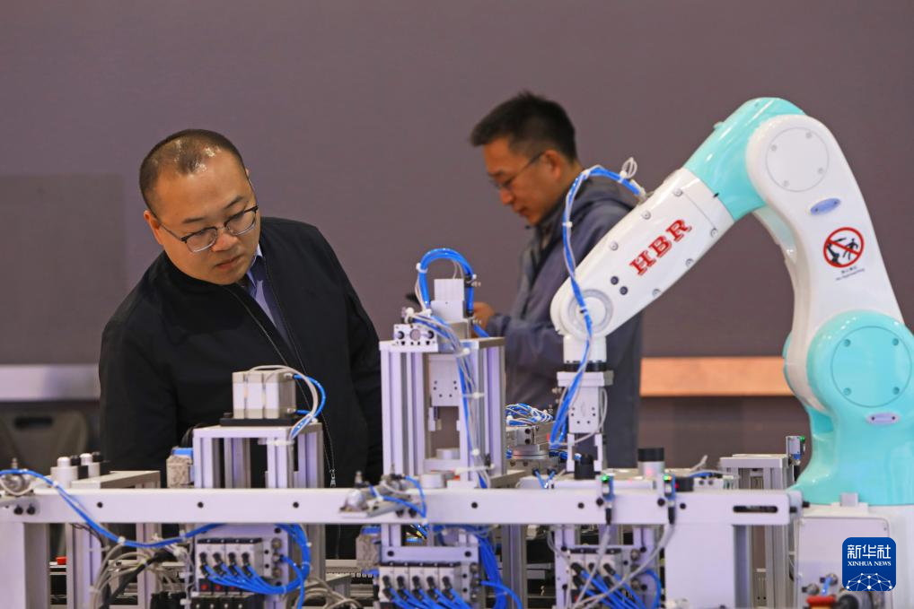 在2023全球工业互联网大会上,参会者在参观5g工业自动化控制系统项目。新华社记者 陈为 摄